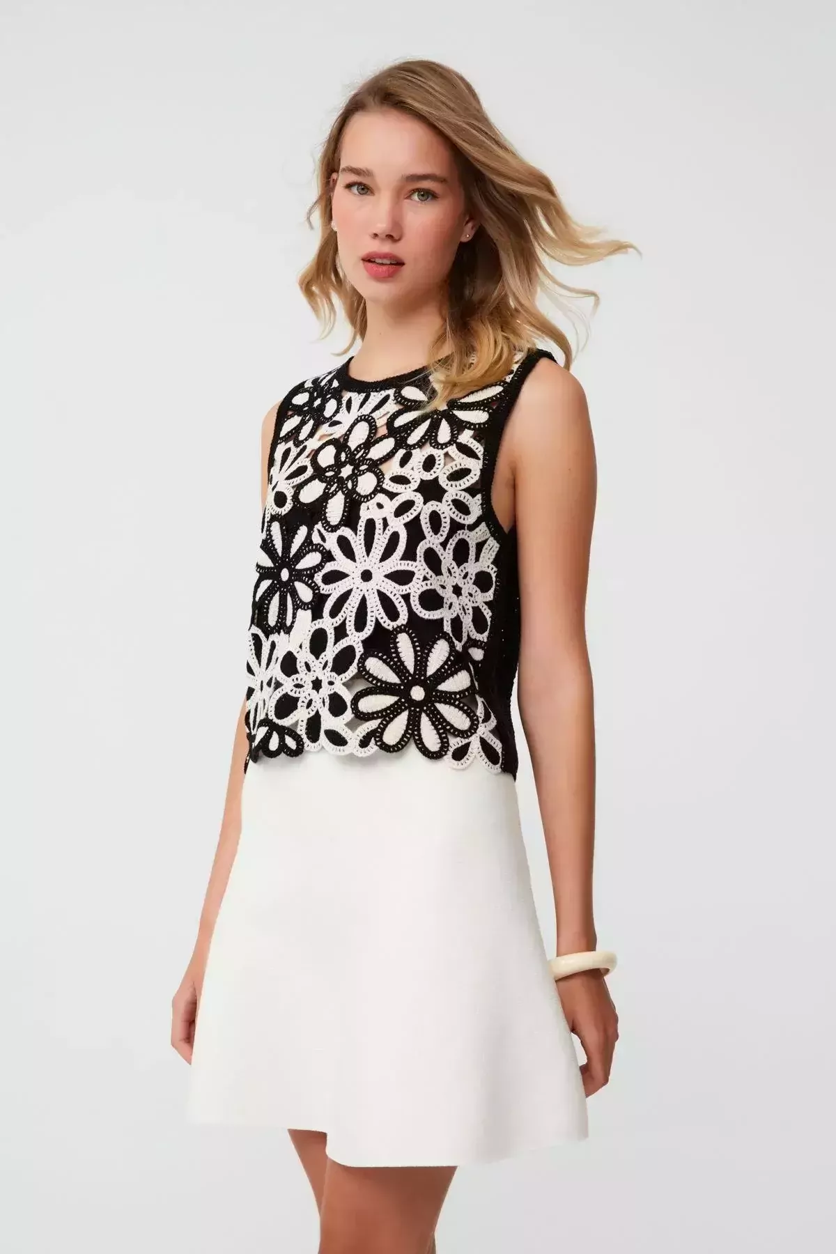 Apple Siyah Beyaz Detaylı Mini Elbise