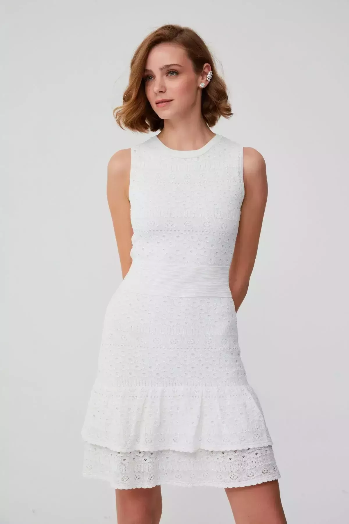 Apple Fırfır Detaylı Beyaz Mini Elbise